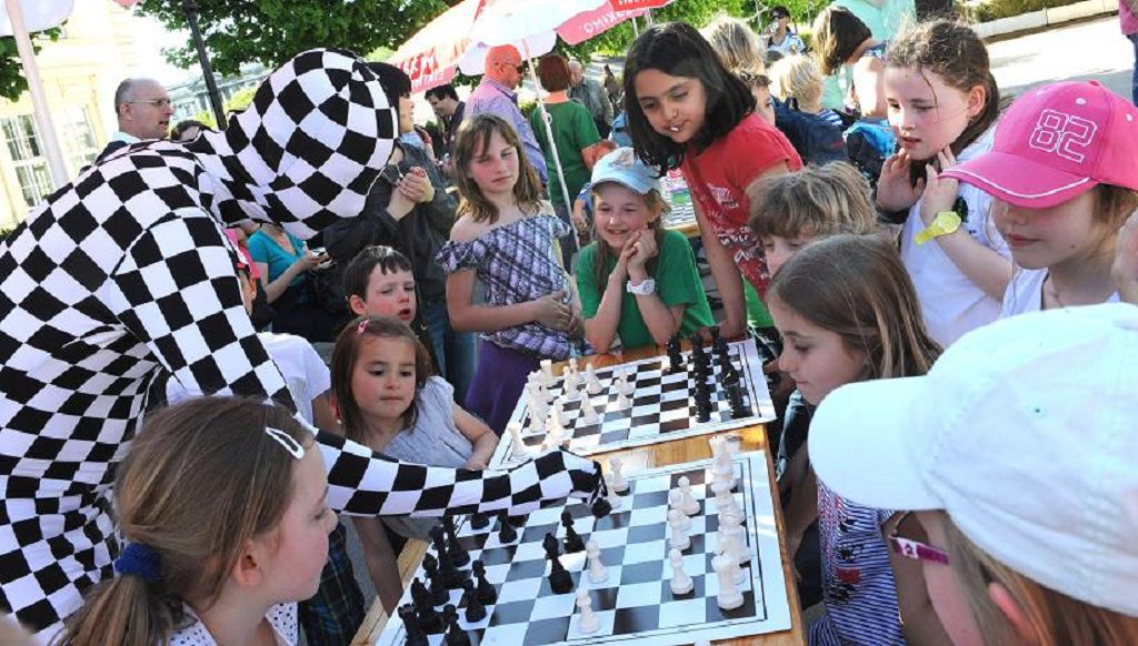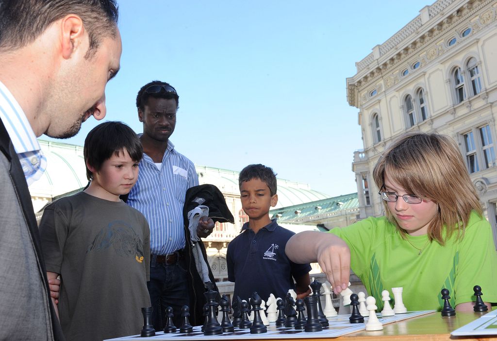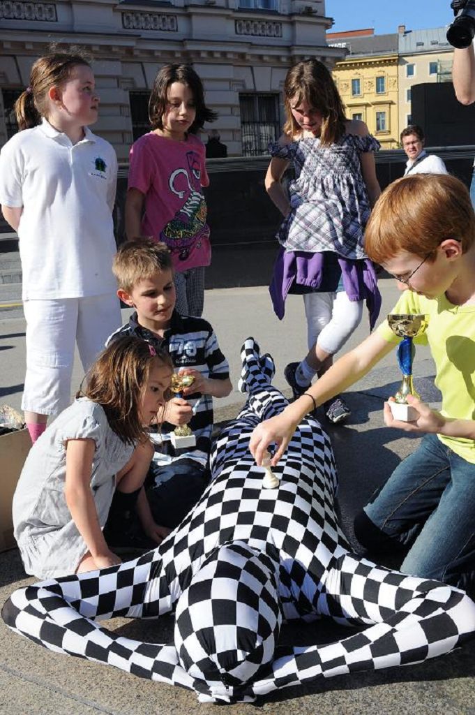 Das zweite Wiener Kinderschachfest fand am wunderschönen und zentral gelegenen Platz vor der Albertina statt. Spielestationen und ein Meistersimultan begeisterten die Kinder ebenso wie das kleine Turnier mit tollen Preisen. Der Chessman sorgte für Unterhaltung und für die Schulschachinteressierten Erwachsenen und Lehrer fand ein internationaler Schulschachkongress mit prominenter Beteiligung statt. Spielend Schlauer hat keine Mühen gescheut um das Fest aus dem Vorjahr noch zu übertreffen. So konnte diesmal als Stargast Ex-Weltmeister Veselin Topalow aus Bulgarien geladen werden, der neben einem Simultan gegen ein internationales Jugendteam auch ein paar Partien mit den Kindern spielte.