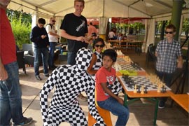 Nach einer kleinen Rätselralley und freiem Spiel fand ein kleines Turnier mit Preisen für alle Teilnehmer statt. Die Pausen wurden mit Freizeitspielen auf den umliegenden Wiesen überbrückt, für eine kleine Stärkung war durch die Süßigkeitenbox auch immer gesorgt. Nach dem Turnier trat Chessman mit seiner Partnerin Chesswoman auf und sogar ein Zauberer war mit von der Partie und konnte die Festgäste mit seinen Tricks begeistern.